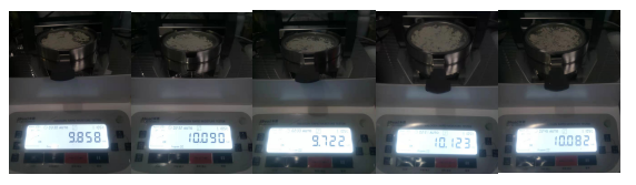 | 產(chǎn)品 | 溫度(℃) | 重量(g) | 時(shí)間(min) | 水分(%) |