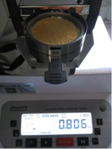 第二次測量,測試時間9分57秒,溫度105℃,水分0.814%
