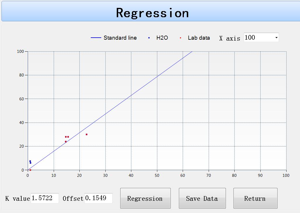 藍(lán)色的點(diǎn)為:未標(biāo)定前的水分值
