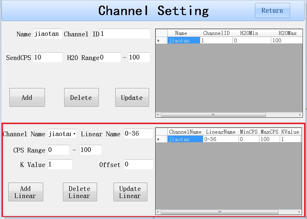 注意:每一個通道可以創(chuàng)建多個線性模型。但是CPS Range區(qū)間不能交叉,如果發(fā)生了交叉,則以最后一個線性模型獲取的數(shù)據(jù)為準(zhǔn)。只有創(chuàng)建線性后,再能在取樣界面選中對應(yīng)的線性進(jìn)行取樣。